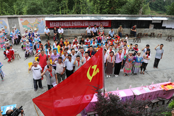 黔東南州質監局、奧博特認證有限公司、培亮村黨支部、培亮小學等所有參會黨員重溫入黨誓詞,讓每個黨員牢記自己當初入黨的那份心,要保持初心,不斷繼續前進。